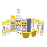 I was drawn to the fact that a tiny pair of sunglasses comes with this sampler. The glasses are good quality and fit great on my 6mo old. The sunscreen selection is fab as well. Good buy or gift.