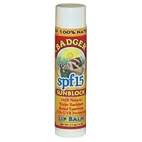 -Eos Lip balm has a small variety of lip balm flavors, and the lemon drop balm is SPF 15.Lemon drop has a nice soft feel, a fun package, and won't look like you dipped your lips into white paint, and has the sun protection you're looking for.